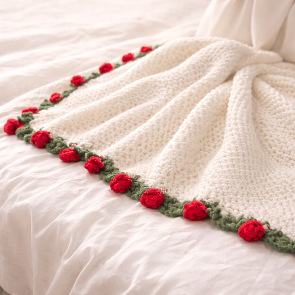 Designed to surprise and comfort — this transforming crochet piece begins as a stunning rose bouquet and unfolds into a soft decorative blanket — perfect for gifting and unforgettable moments.